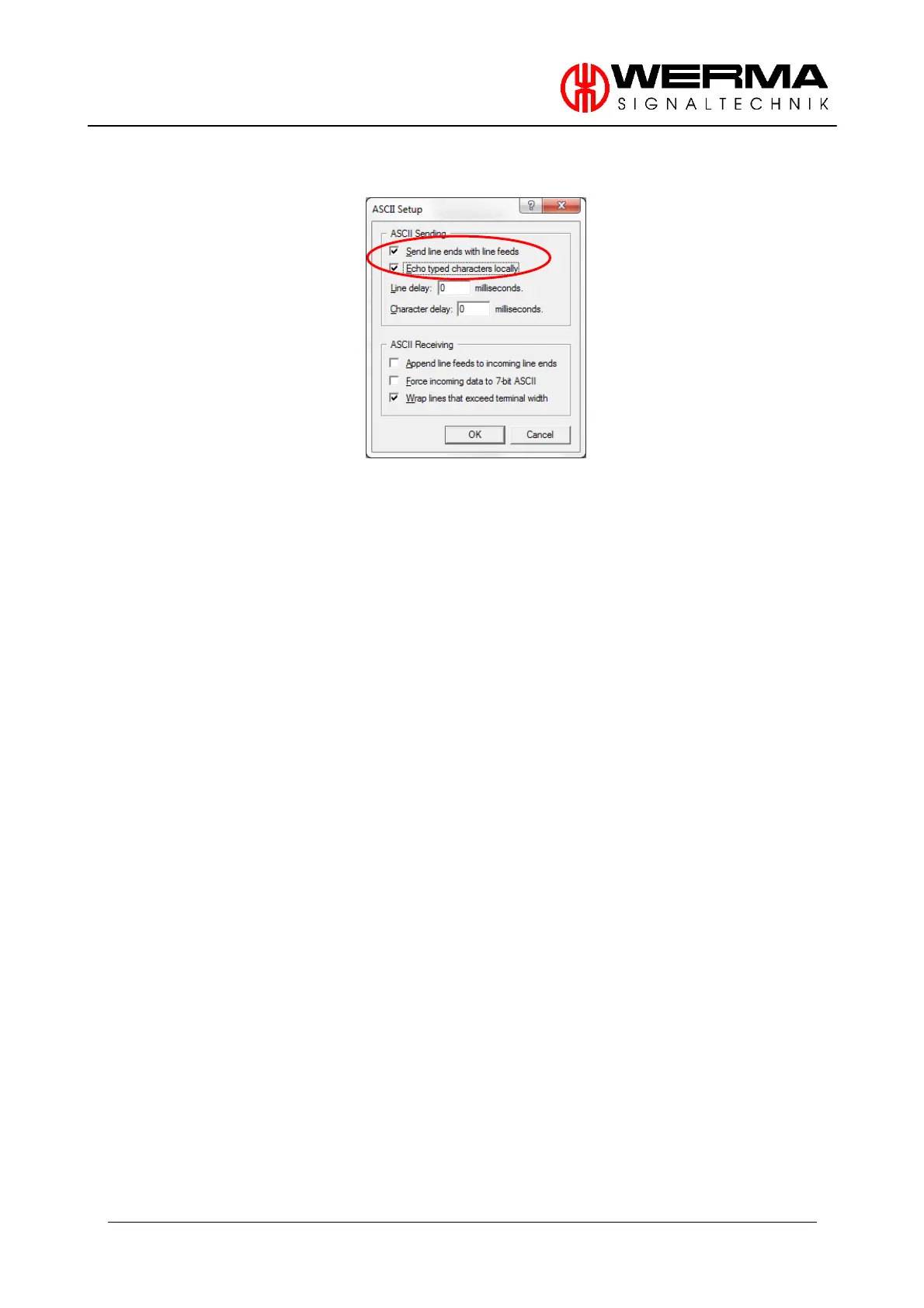 7. Activate the line feeds and local echo Echo typed characters locally and confirm the