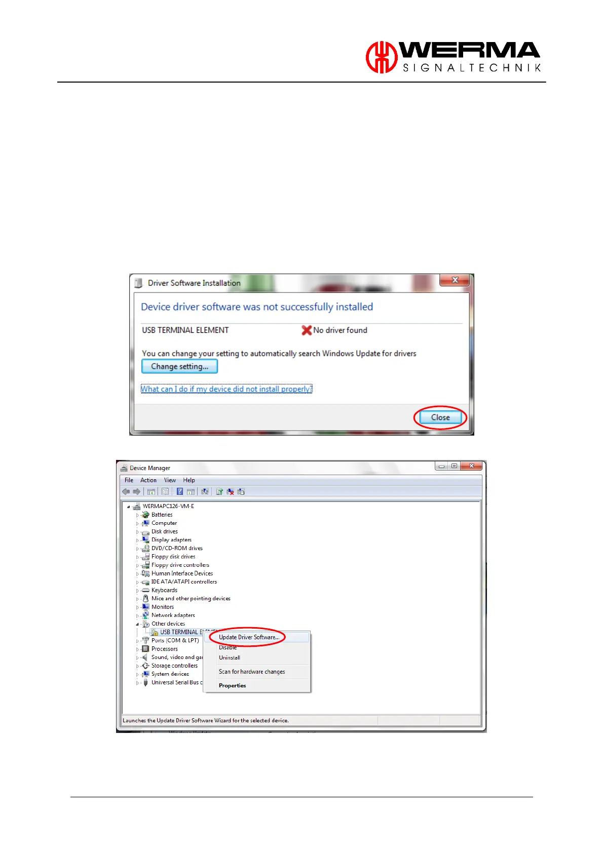 Note: Manual driver installation is only required if the USB terminal element is not recognised.