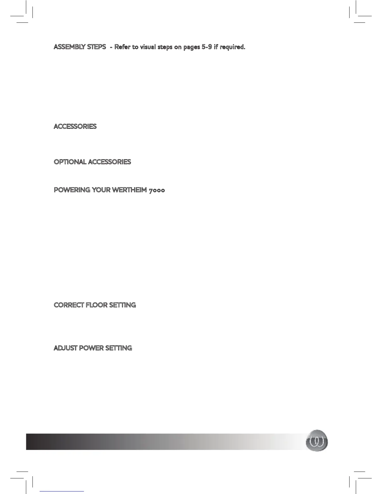 Your Wertheim 7000 comes with a powerhead, a deluxe combination fl oor tool, a mini turbo