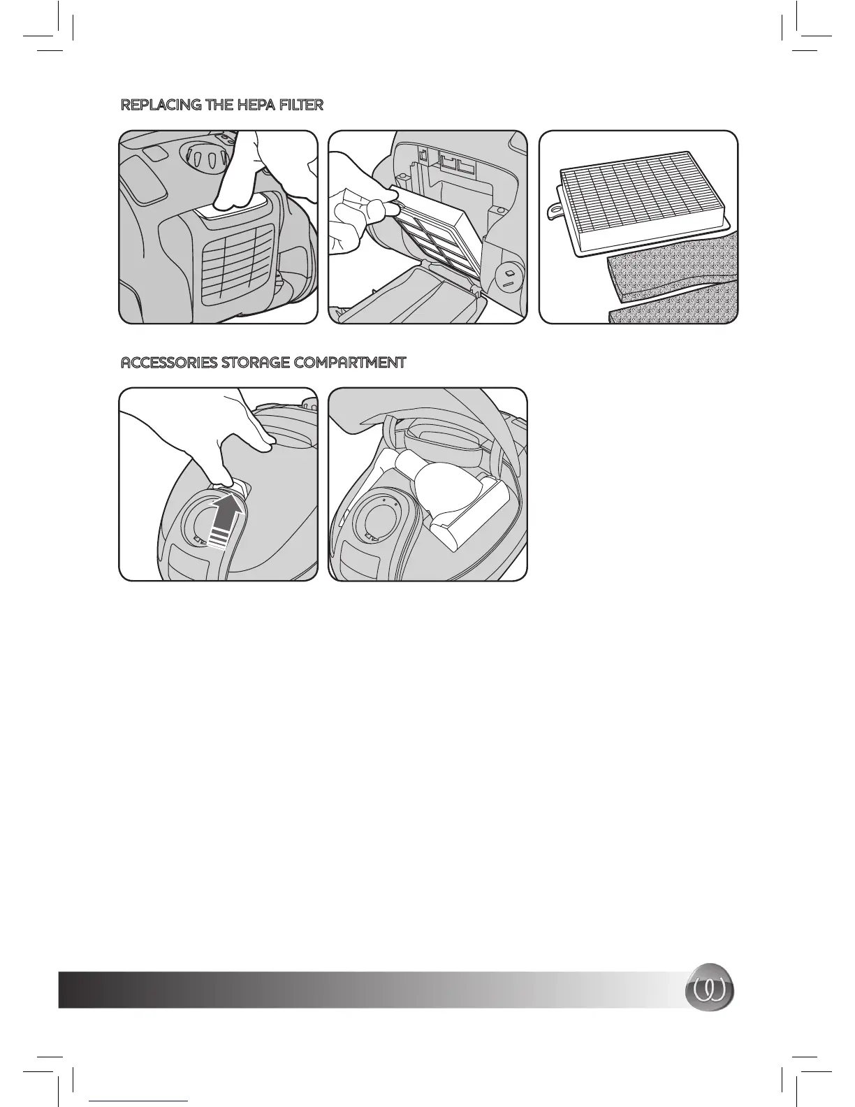 WERTHEIM 7000 - Replacing the Hepa Filter; Accessories Storage Compartment