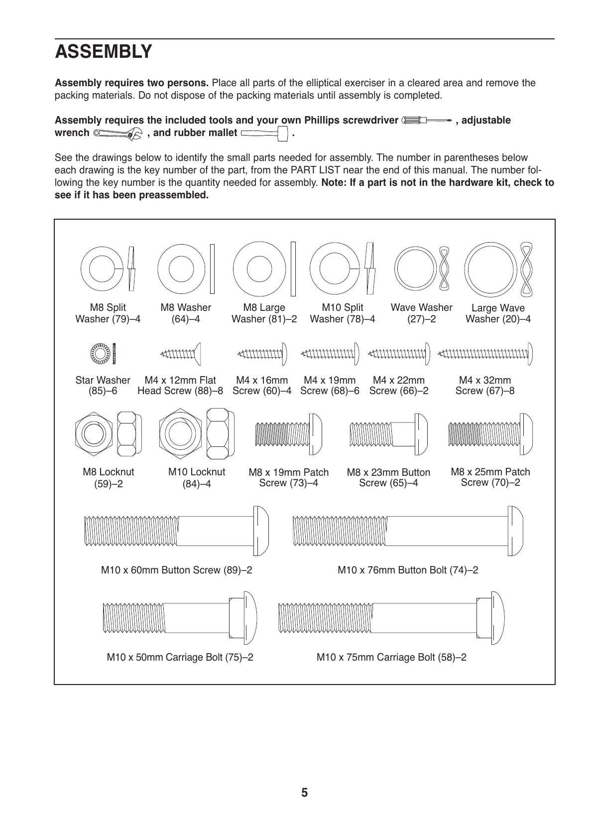 lowing the key number is the quantity needed for assembly. Note: If a part is not in the hardware kit, check to