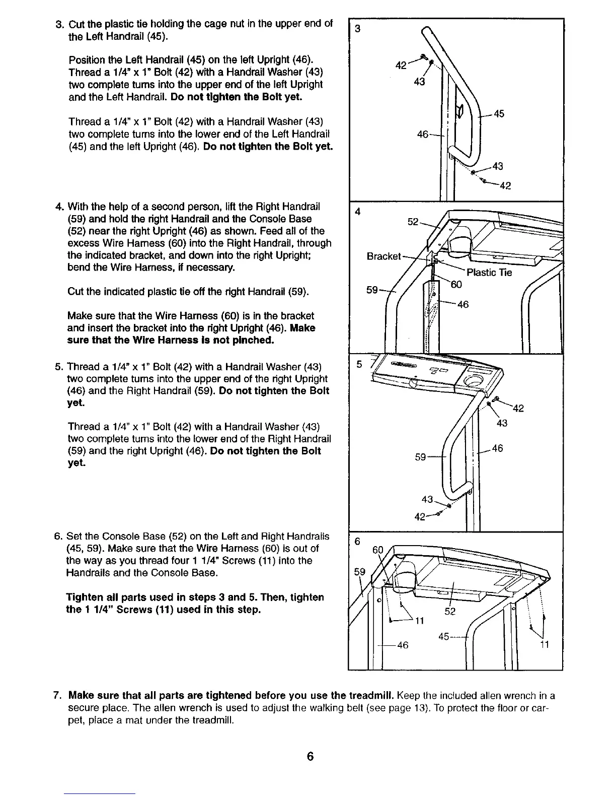 (46) and the Right Handrail (59). Do not tighten the Bolt