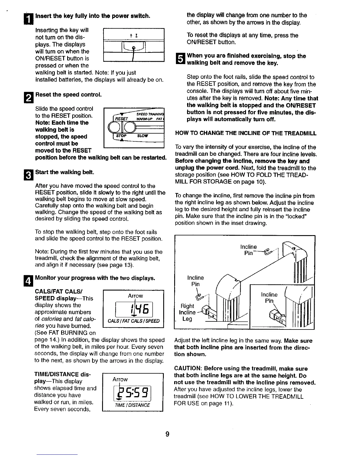 not use the treadmill with the incline pins removed.