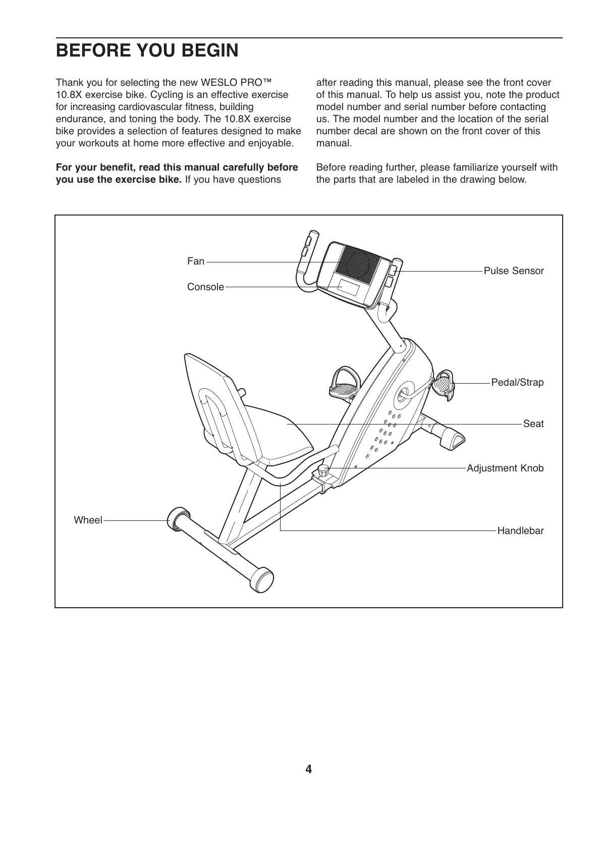 Thank you for selecting the new WESLO PRO™