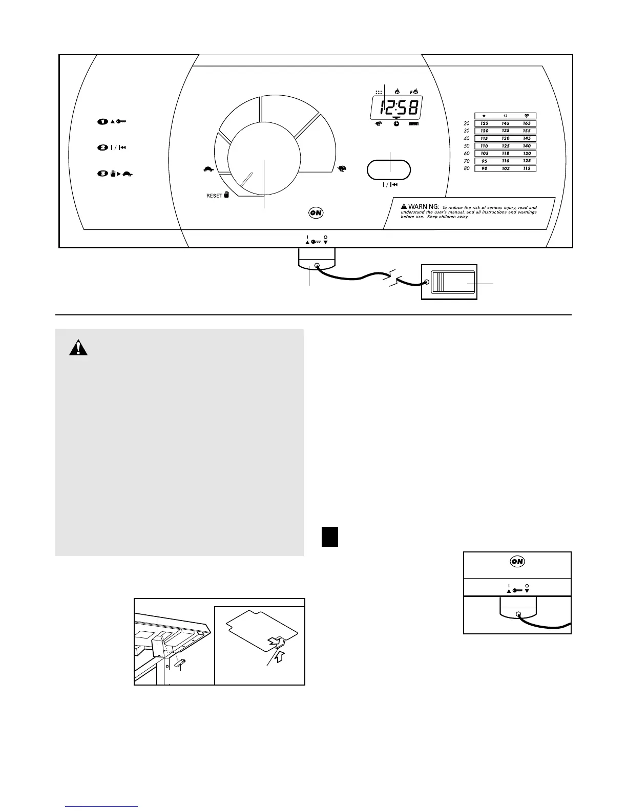 foot rails of the treadmill. Next, find the clip attached to