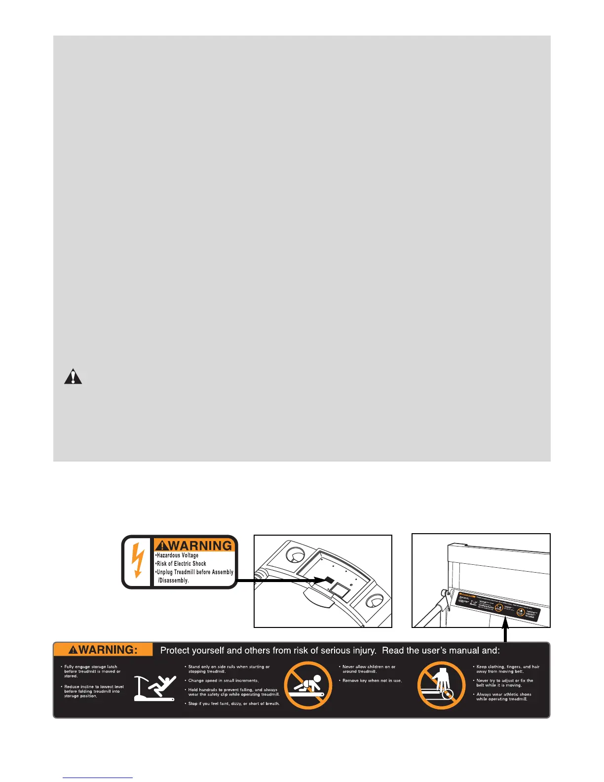 The decals shown have been placed on your treadmill. If a decal is missing, or if it is not legible, please
