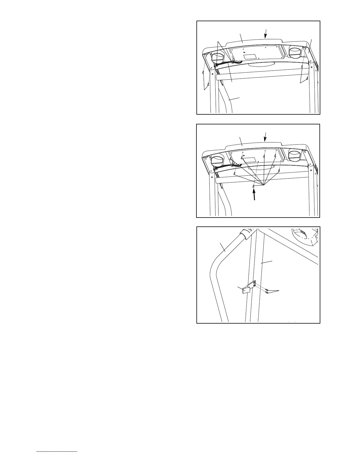 9. Make sure that all parts are properly tightened before you use the treadmill. Note: Extra hardware may