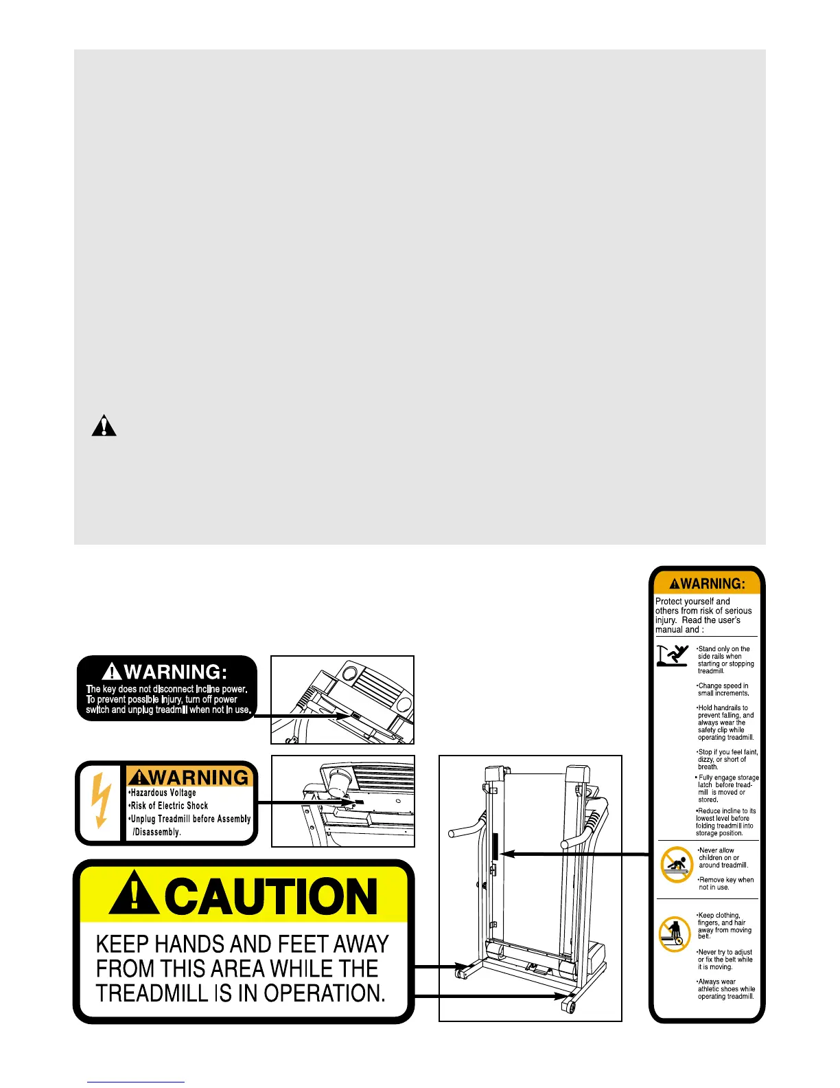 The decals shown have been placed on your treadmill. If a decal is missing, or if