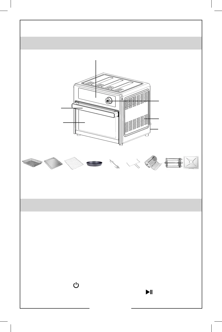 Note: When using the air fryer oven for the first time, a little smoke or odor may be emitted.
