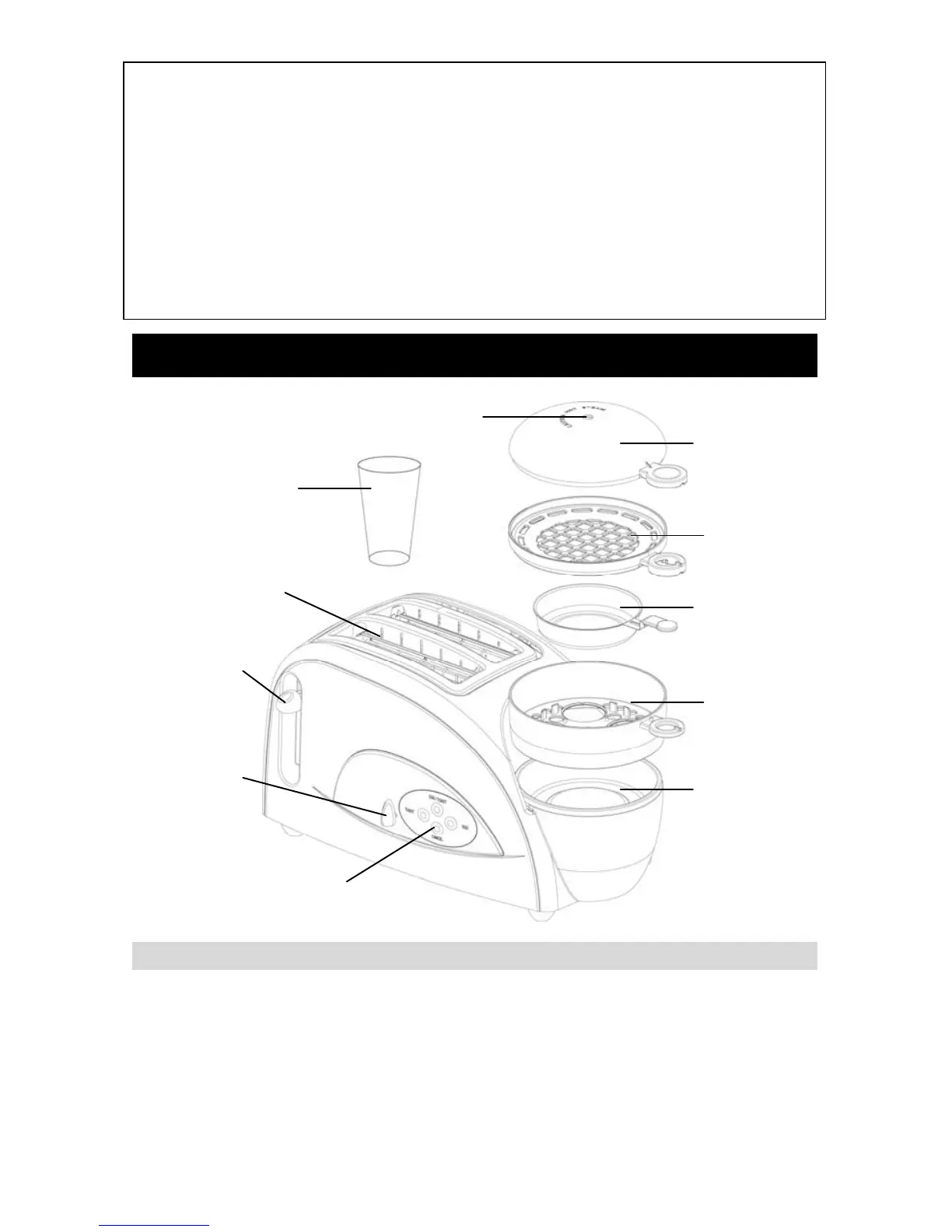• Do not attempt to operate the egg poacher without water in the reservoir.