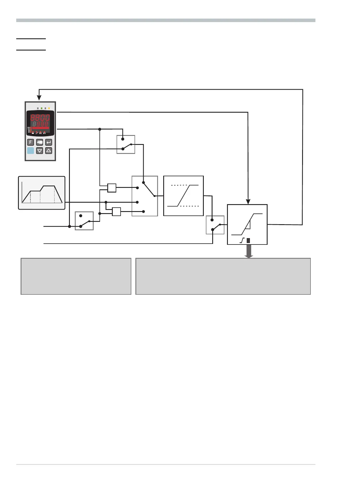 The ramp starts at process value with the following switchings: