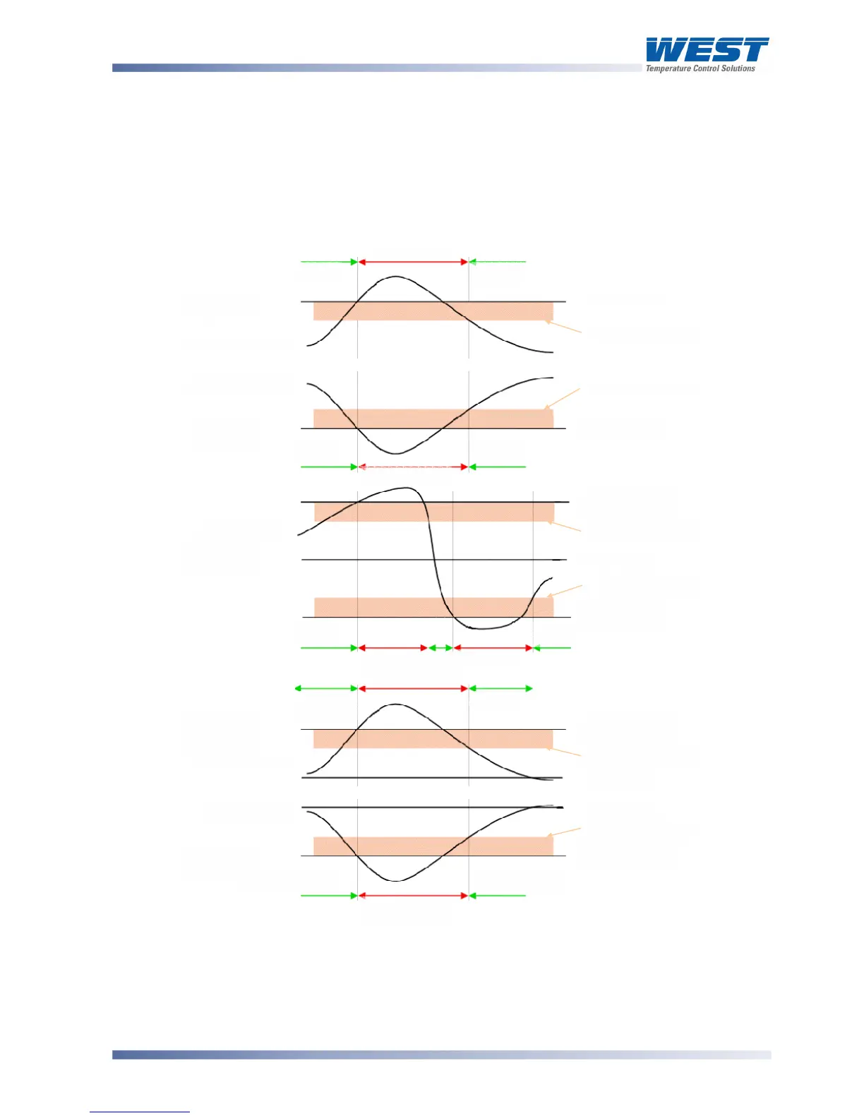 alarm’s hysteresis band is below the high alarm value, and a low alarm’s hysteresis is above