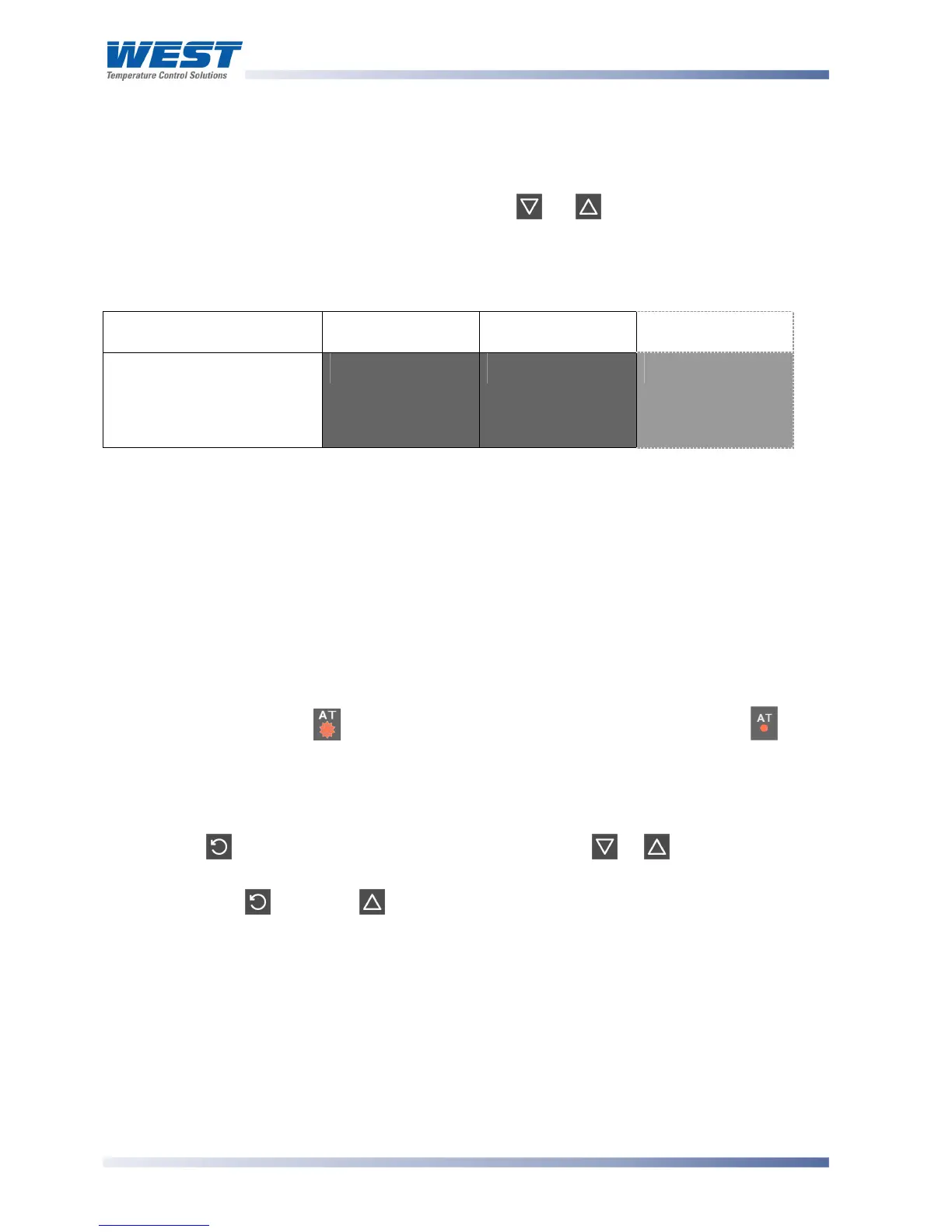 Press to select the next parameter in the table and or to set the value