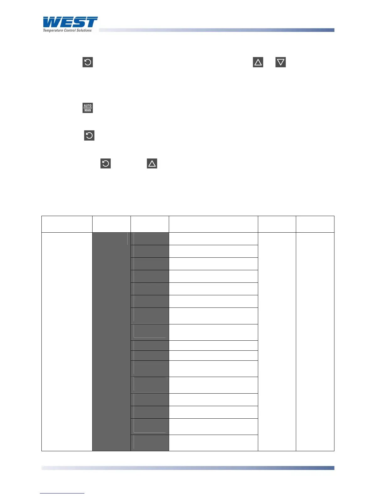 Press to navigate to the required parameter, then press or to set the