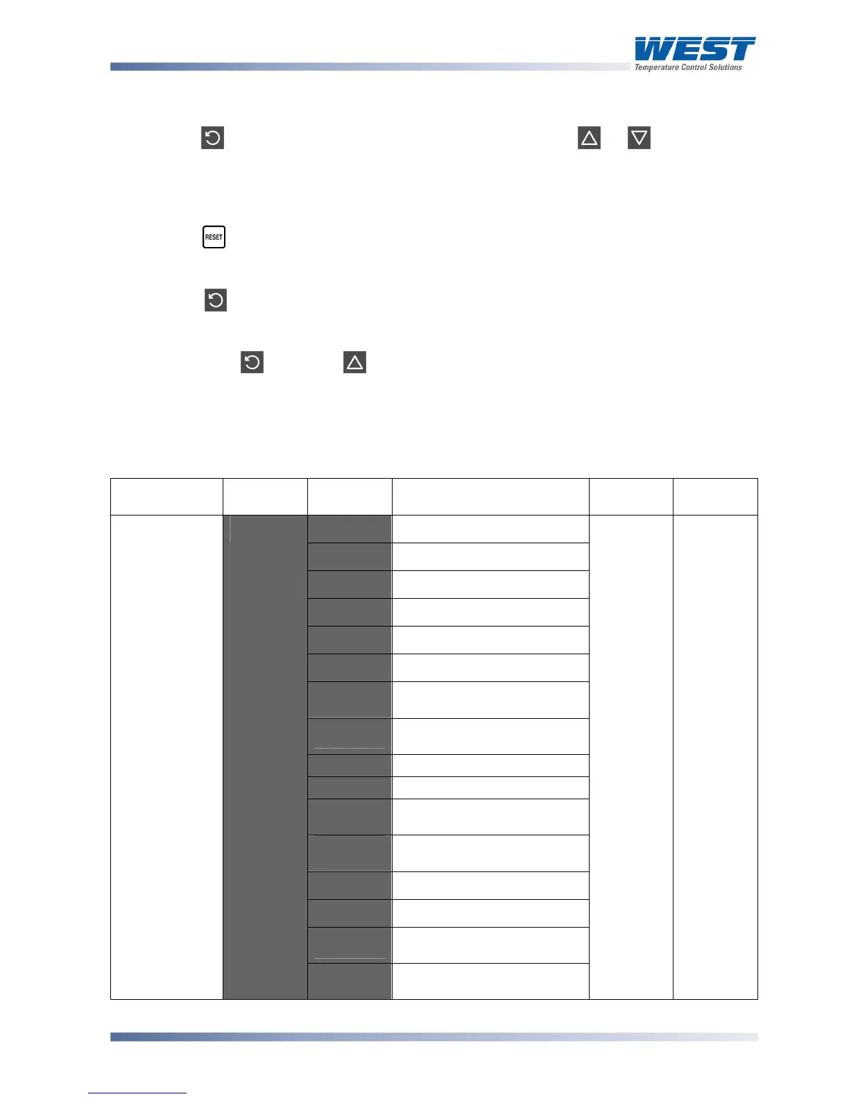 WEST P8100 - Changing Parameter Values; Table 16. P6700, P8700 & P4700 Configuration Mode Parameters