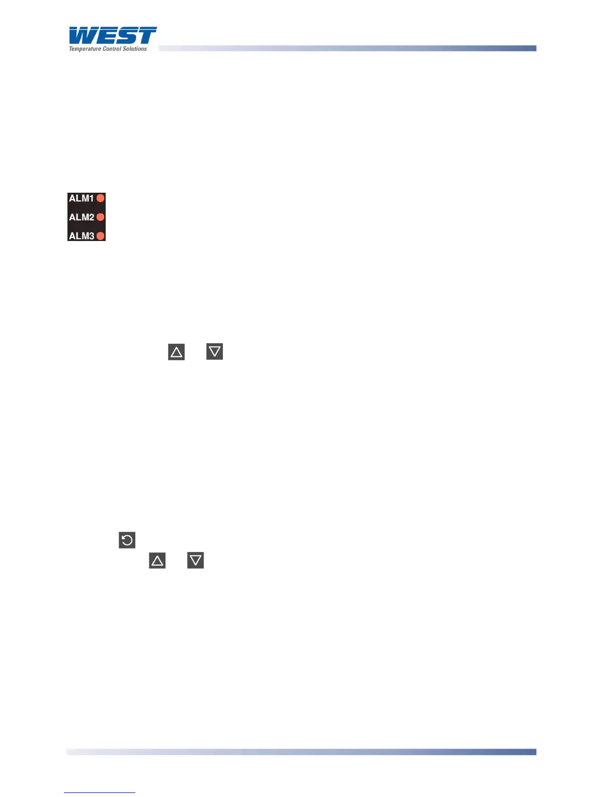 WEST P8700 - Din Indicator Units Display; Alarm Indications; Resetting Latched Alarm Outputs; Resetting Alarm 1 Active Time, Minimum PV or Maximum PV
