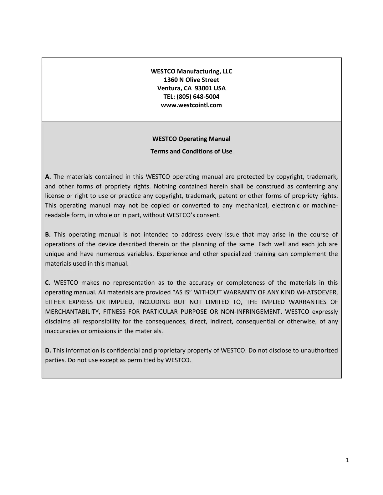 A. The materials contained in this WESTCO operating manual are protected by copyright, trademark,