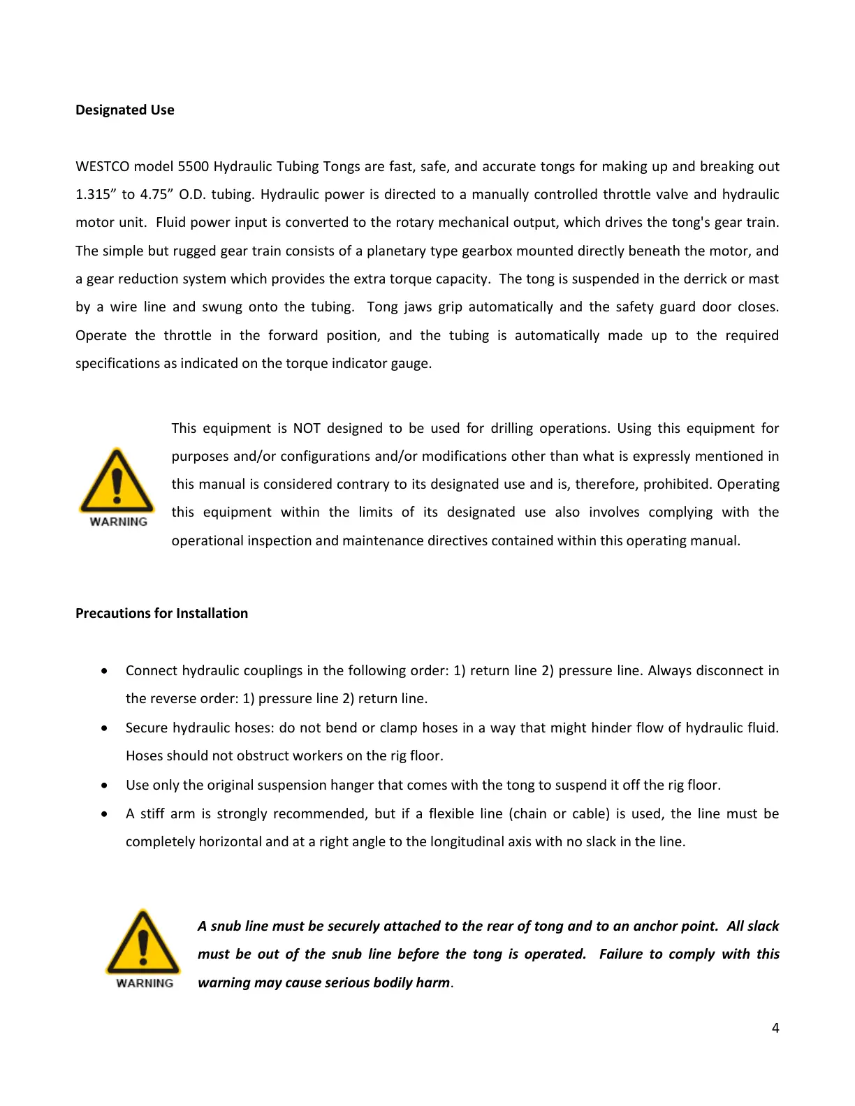 must be out of the snub line before the tong is operated. Failure to comply with this