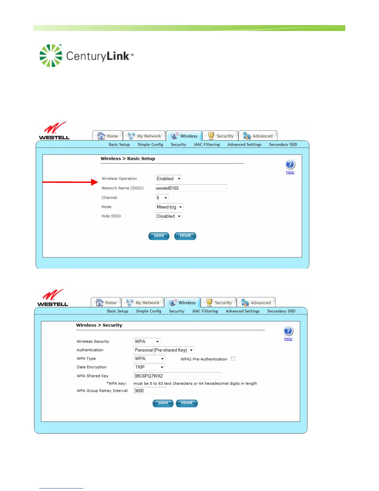 The wireless option for the Westell 7500 gateway is enabled by default. This section outlines the
