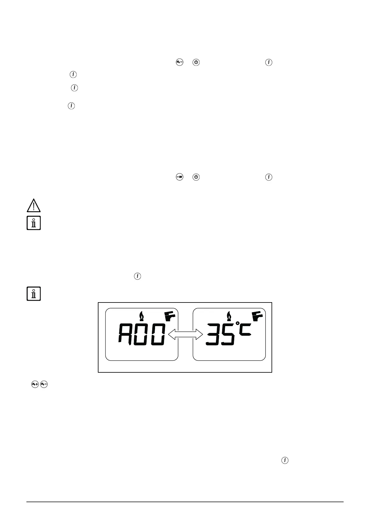 Amikor az “INFO” funkció aktív, a kijelzőn az “A00” kiírás és a kazán előremenő hőmérsékletének értéke váltakozva tűnik fel:
