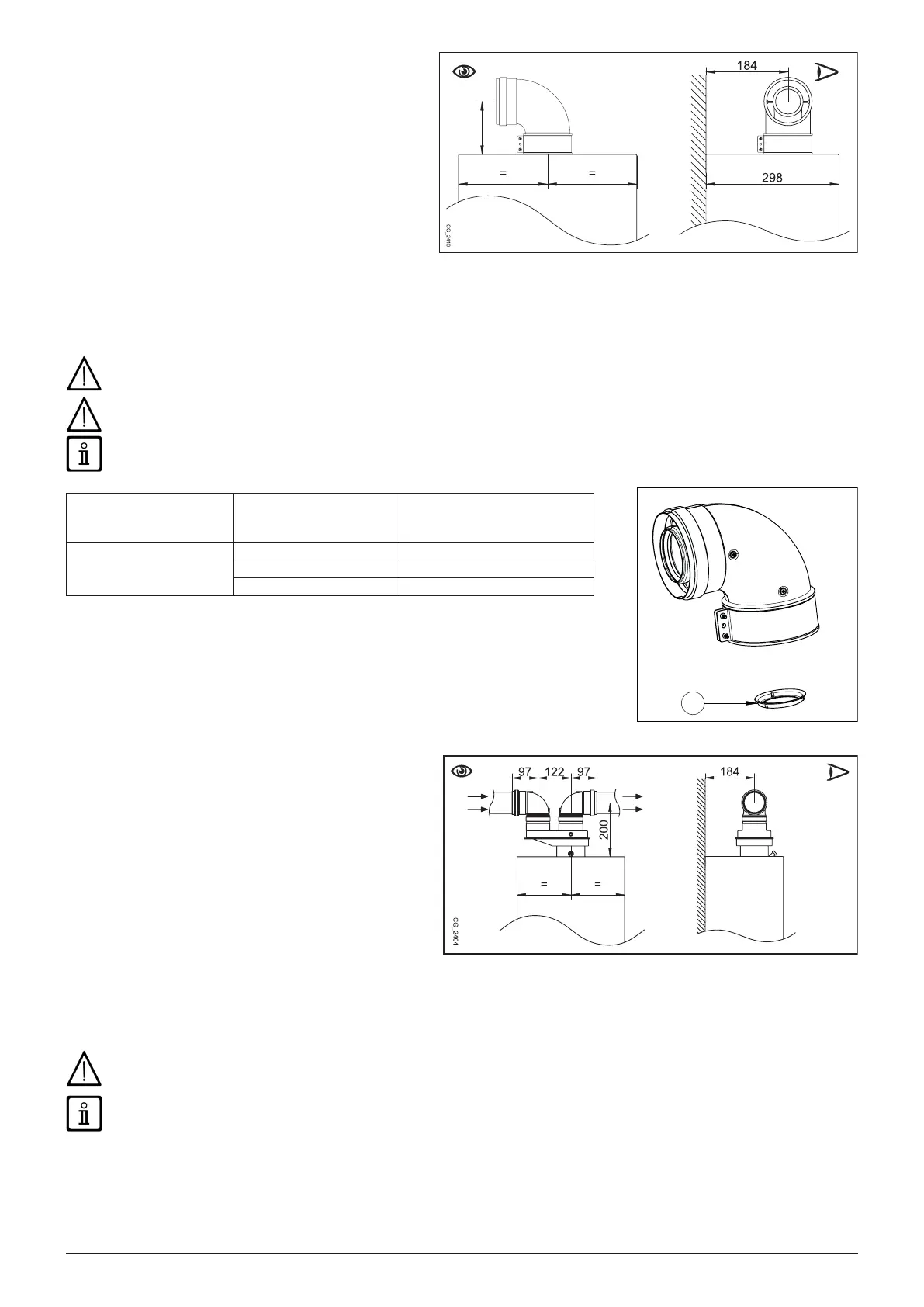 • Un cot de 90° reduce lungimea totală a conductei cu 1 metru.