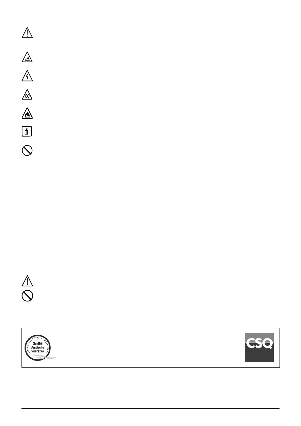 Do not use and/or store highly ammable material (thinners, paper, etc.) near the boiler.