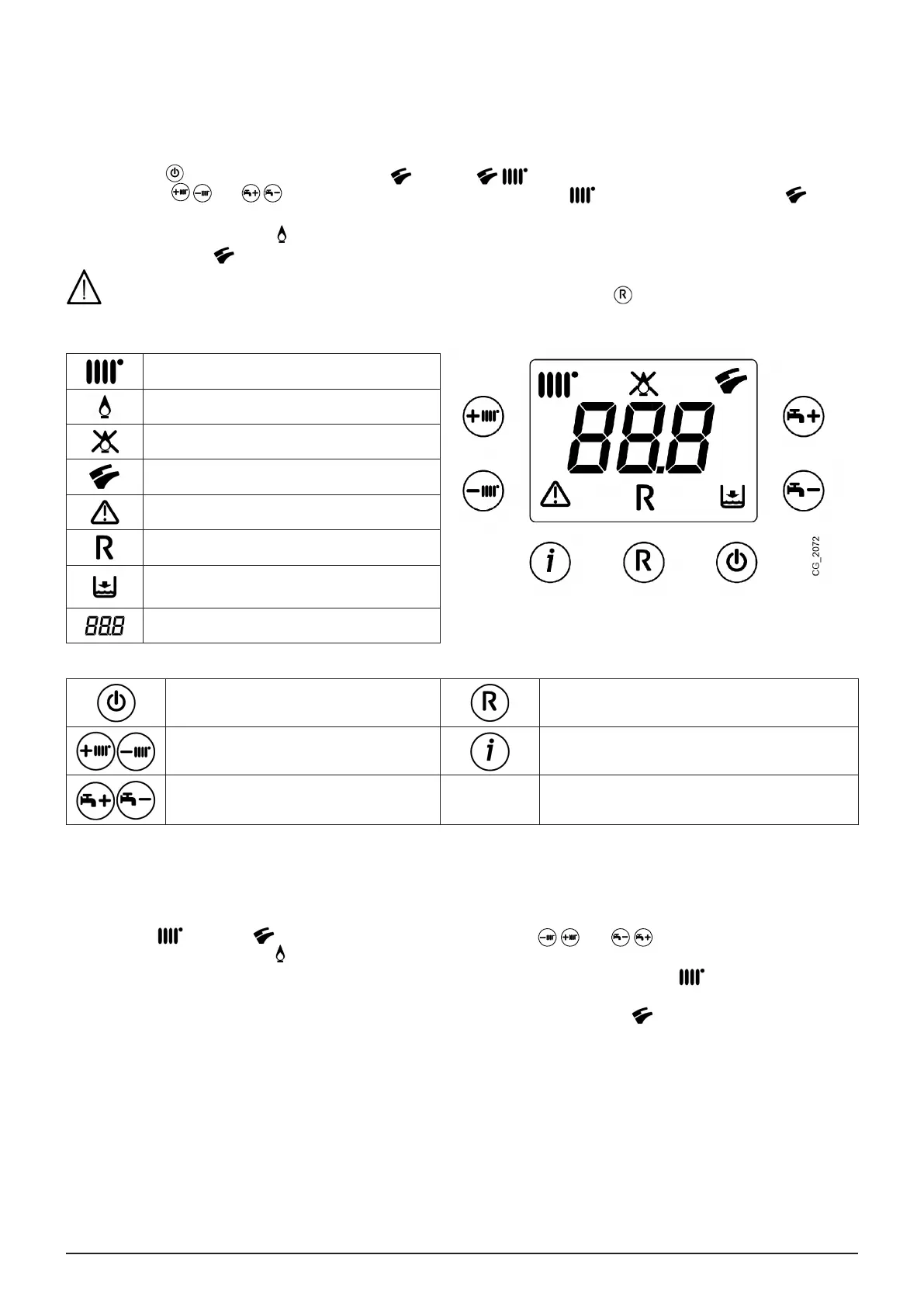 Adjust the CH and DHW delivery temperature by pressing buttons and respectively. When the burner is