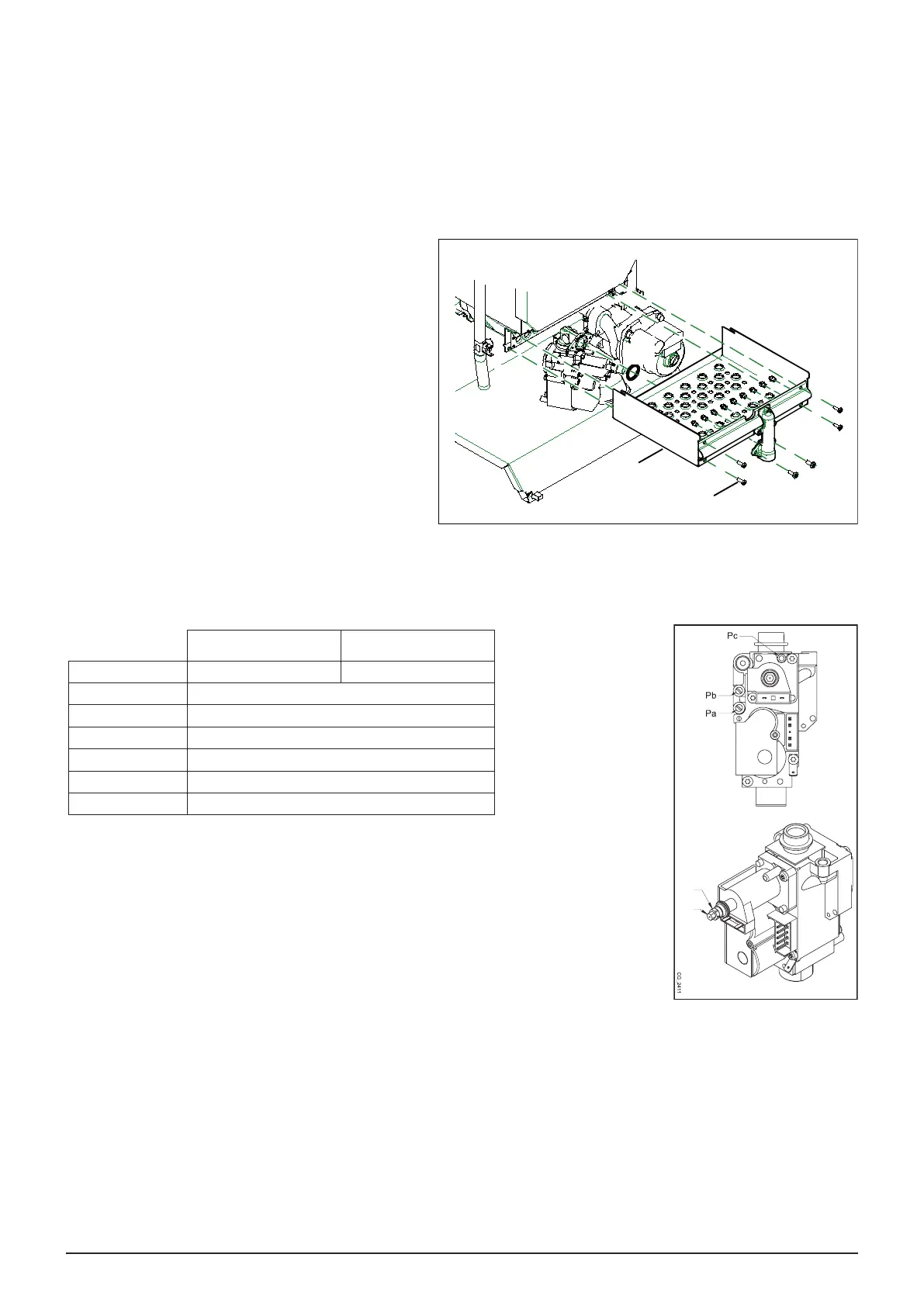 • make sure that the dynamic inlet pressure of the boiler, measured at the gas valve pressure test point (Pa) is correct, as