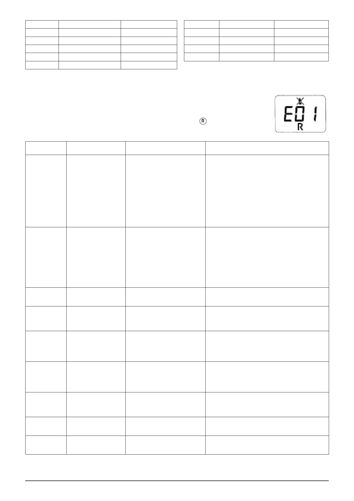 Las anomalías visualizadas en la pantalla están identicadas por el símbolo "E" y un número (código