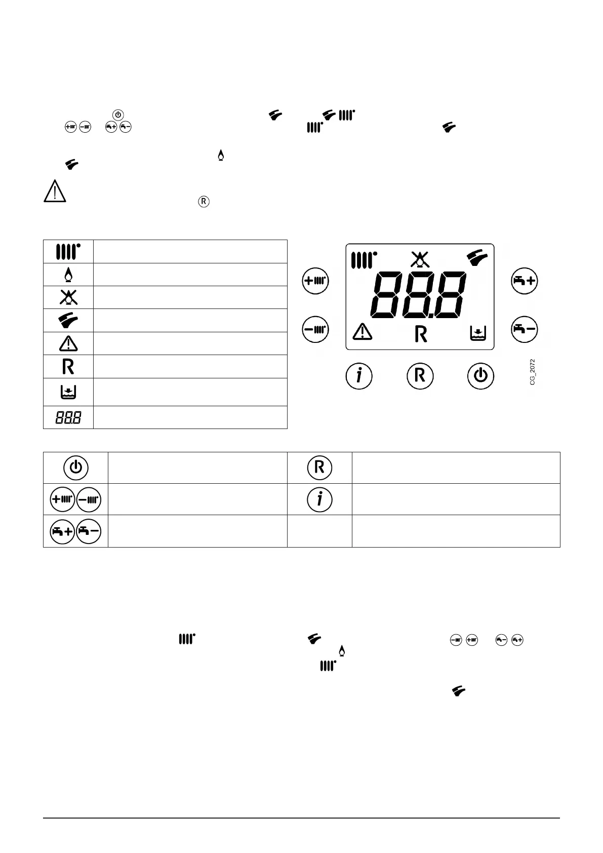 FŰTÉS: mialatt a kazán fűtés üzemmódban működik, a kijelzőn a szimbólum villog, és az odairányú fűtési hőmérséklet