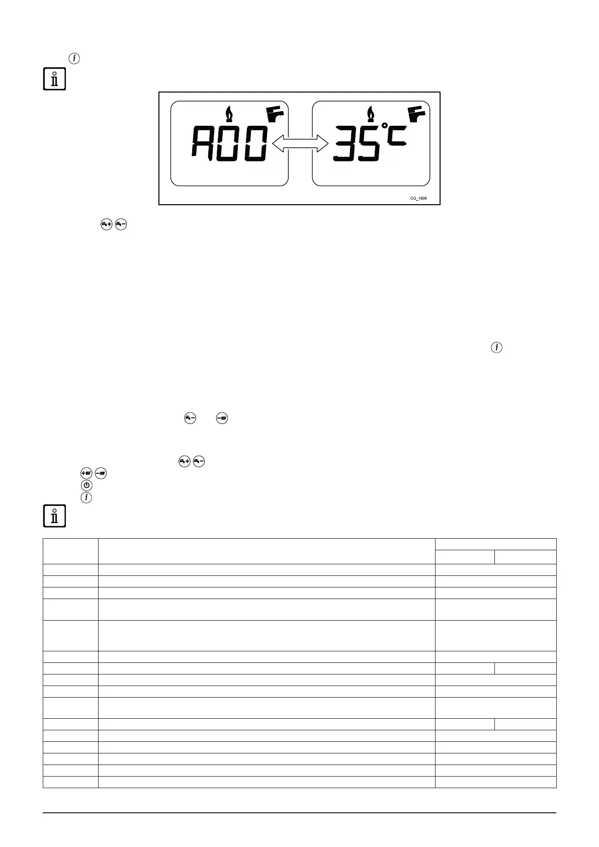 When the “INFO” function is enabled, the message “A00” alternating with the boiler delivery temperature, is shown on the