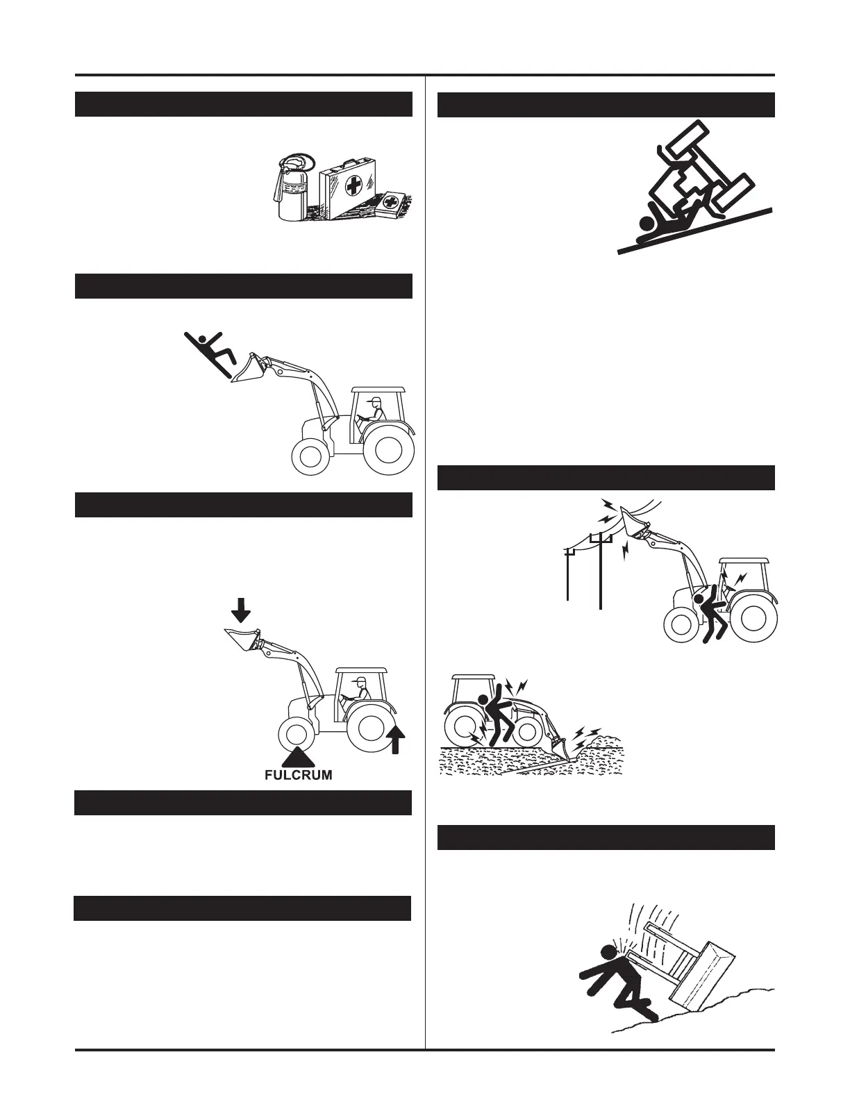 NEVER lift or carry anyone with loader, bucket or