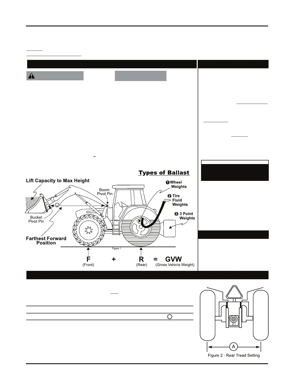 proper rear ballast conditions listed in above. If minimum tread settings are not available in your mounting