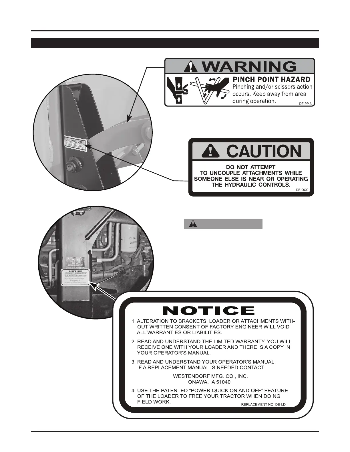 • Replacement all worn or illegible decals immediately