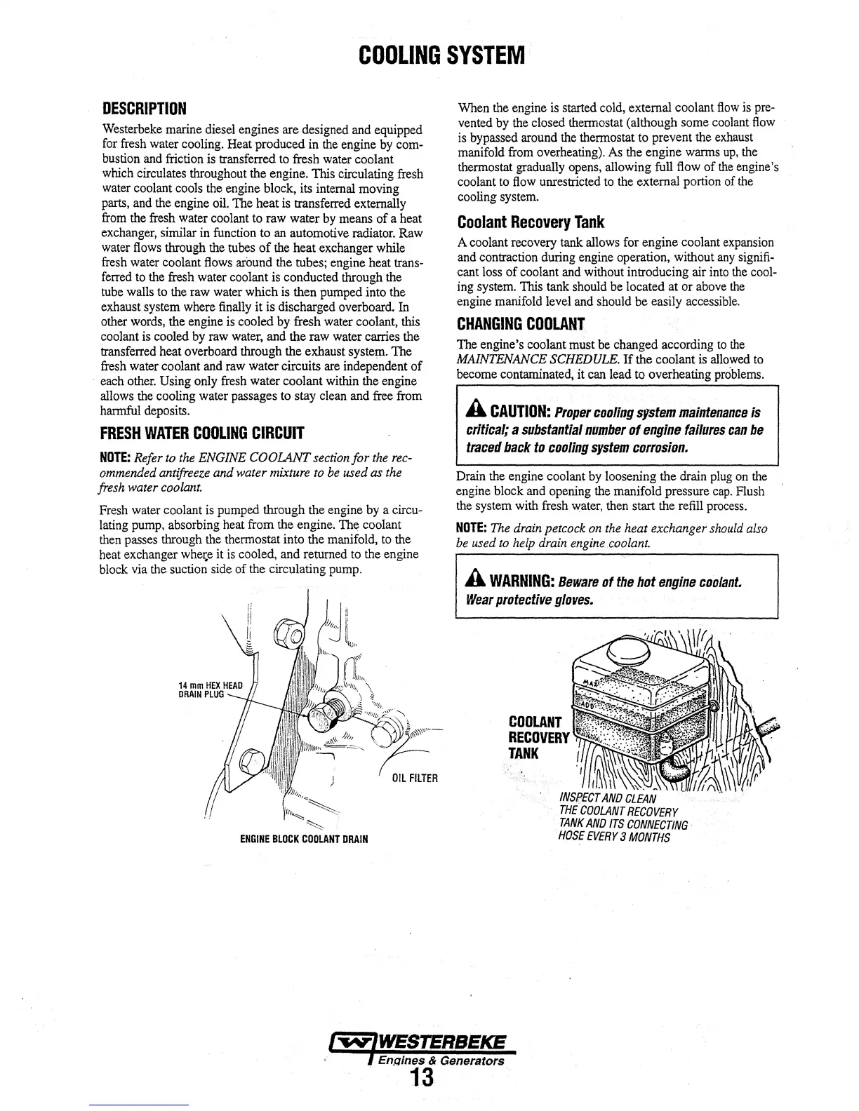 Westerbeke 12.5 BTDA - Cooling System Details; Cooling System Description; Fresh Water Cooling Circuit Operation; Coolant Recovery Tank Function and Placement