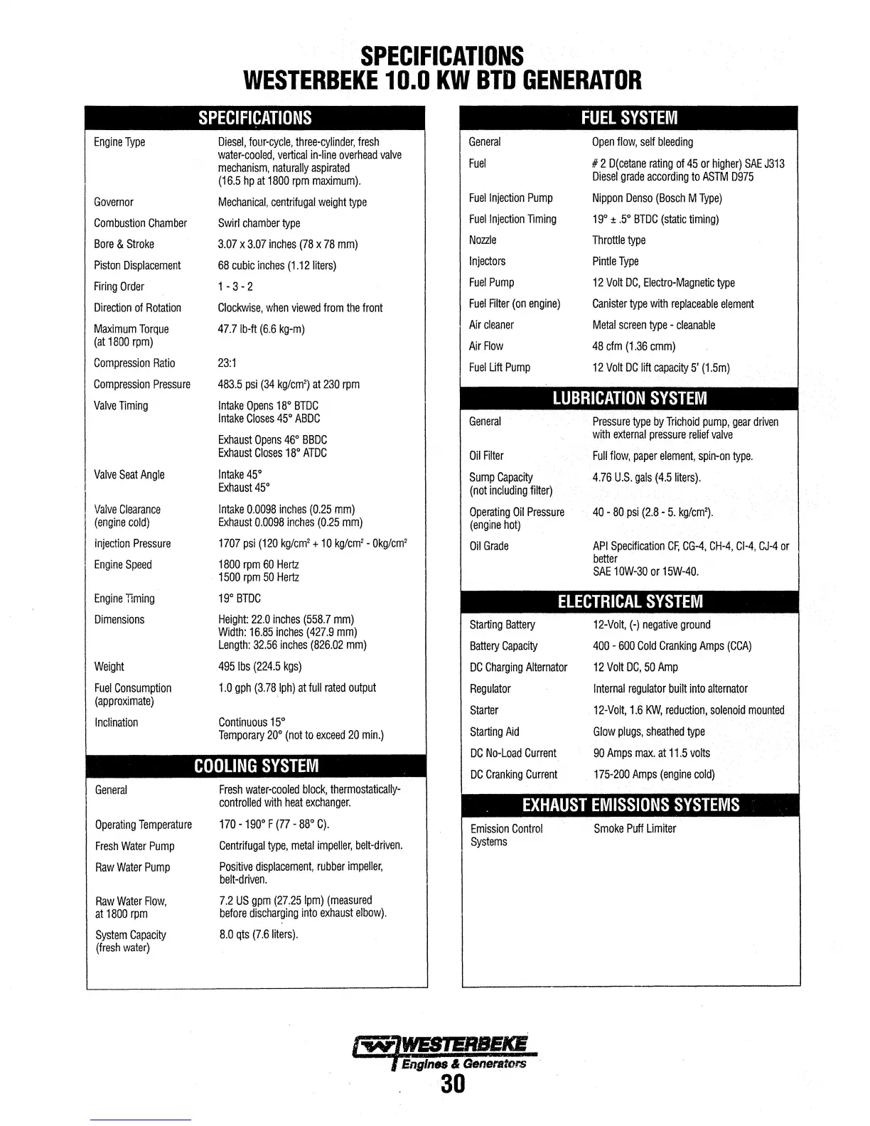 Westerbeke 12.5 BTDA - Generator Information; Use of Electric Motors with Generators; Generator Frequency Adjustment; Generator Maintenance and Cleanliness