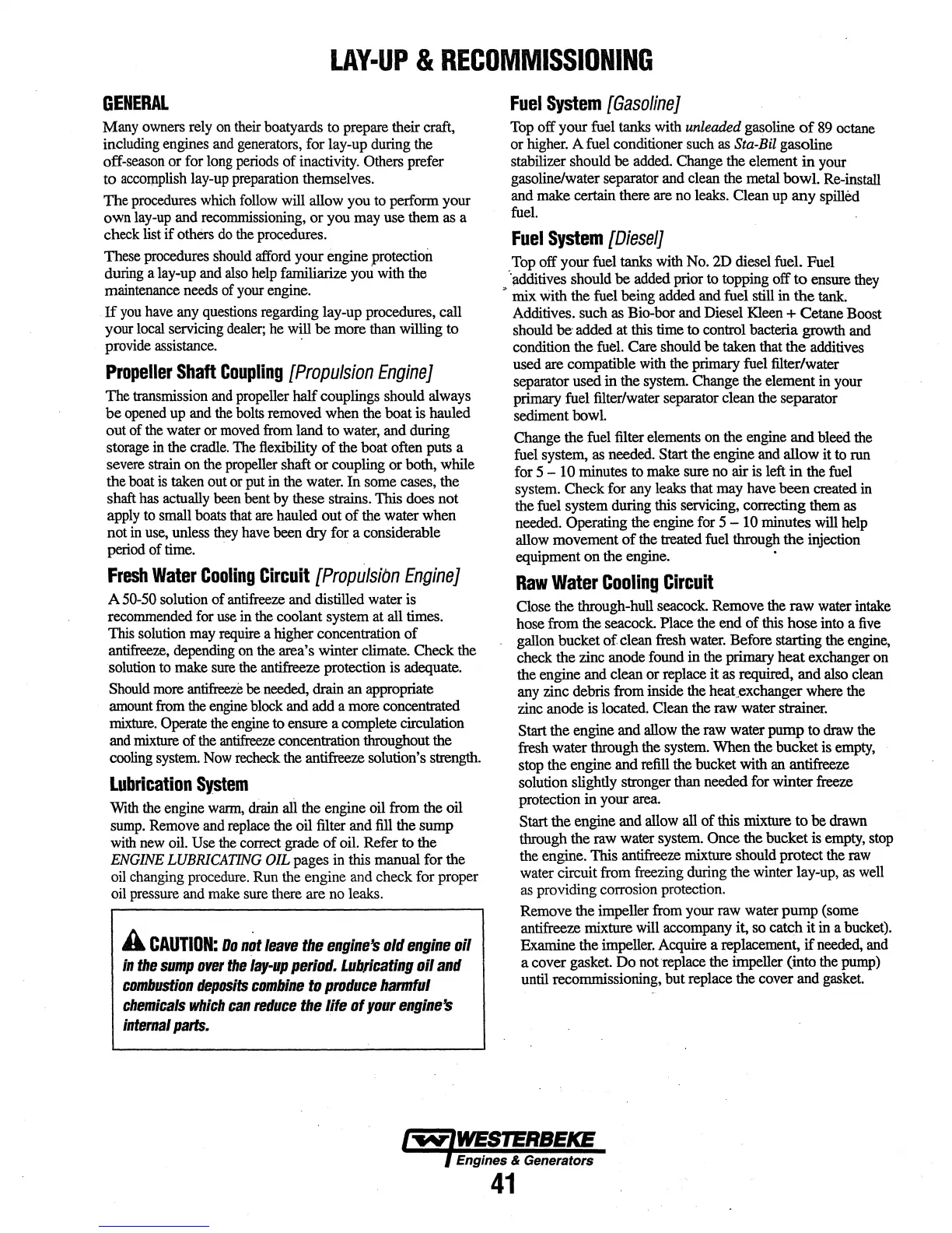water circuit from freezing during the winter lay-up,