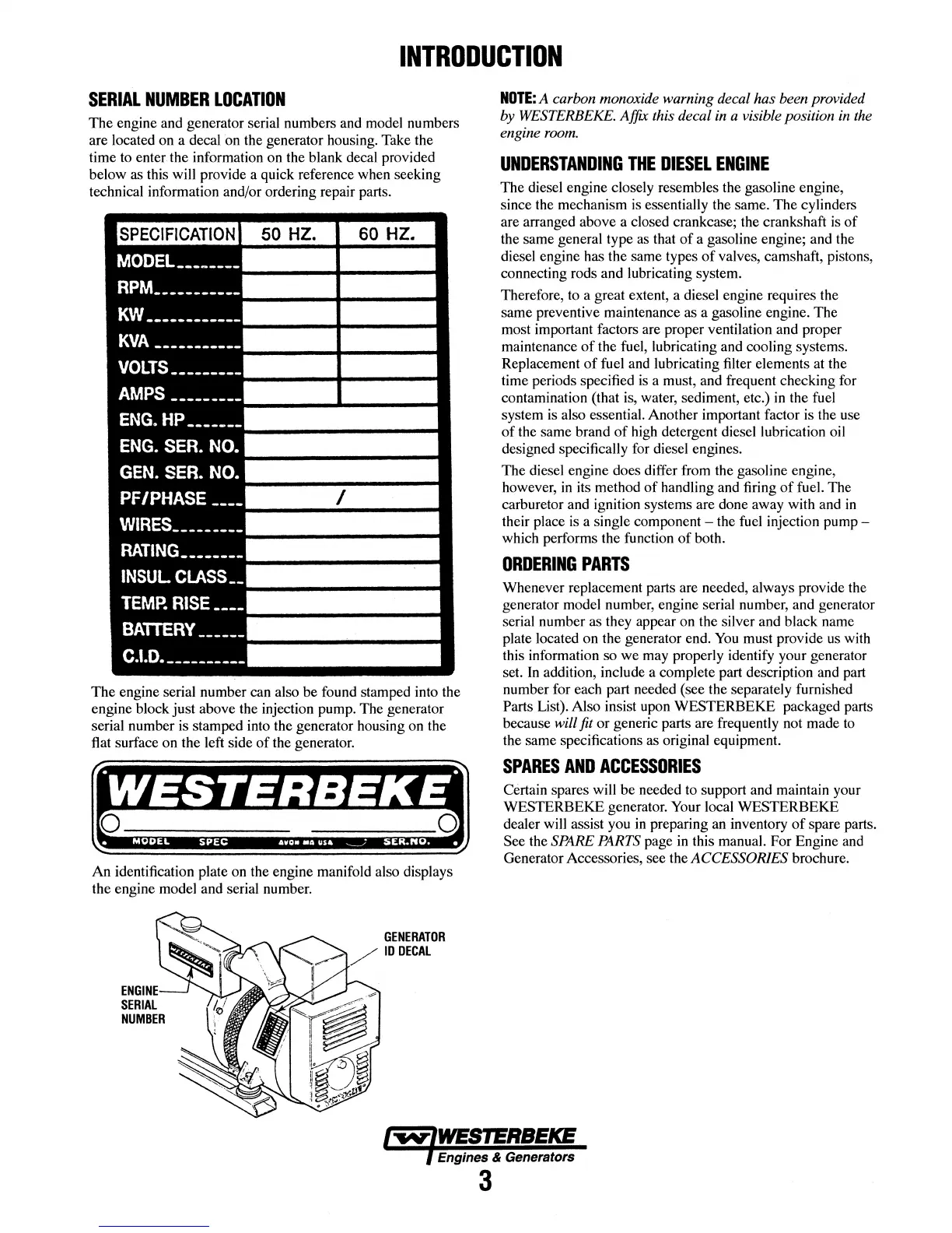 Parts List). Also insist upon WESTERBEKE packaged parts