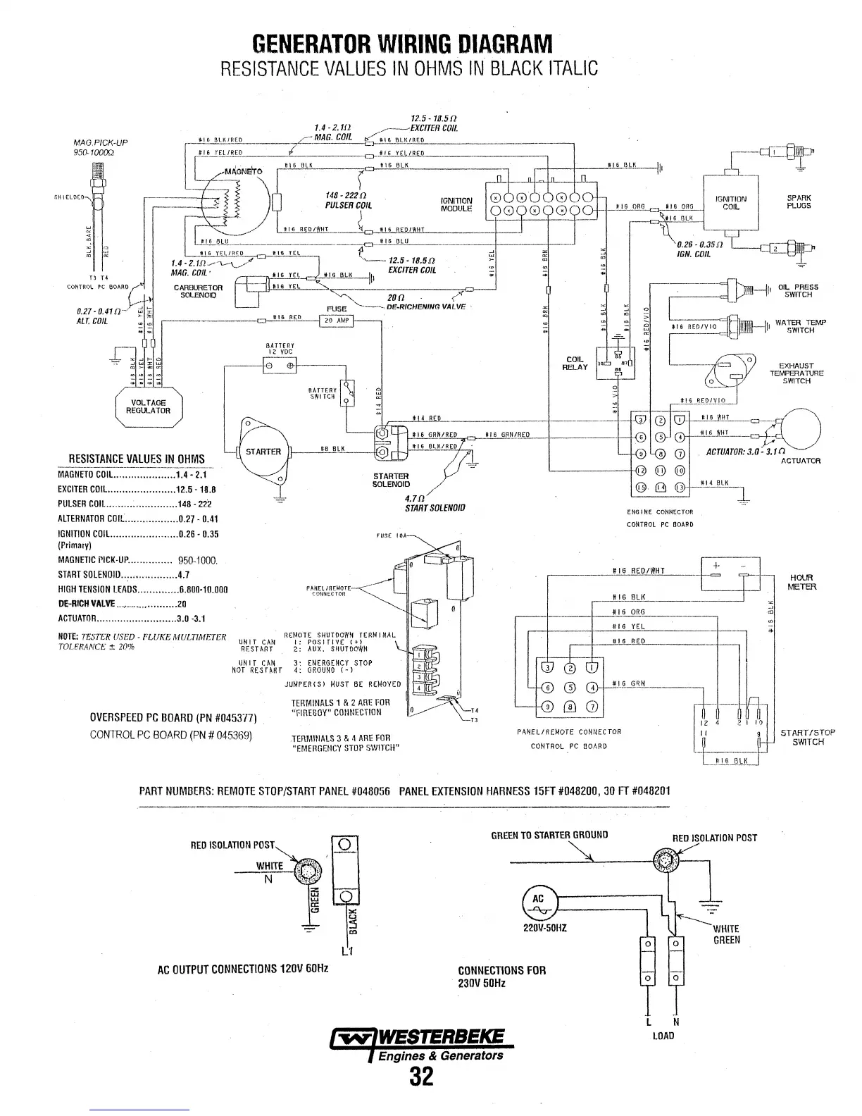 Westerbeke 3.0 BPMG - Generator Wiring Diagram and Resistance Values; BCG Generator Wiring and Resistance