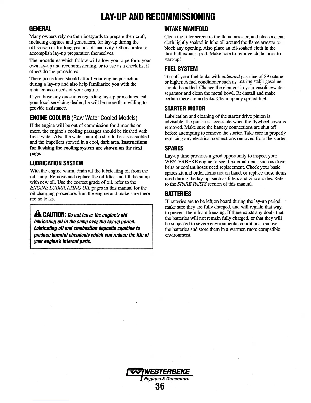including engines and generators, for lay-up during the