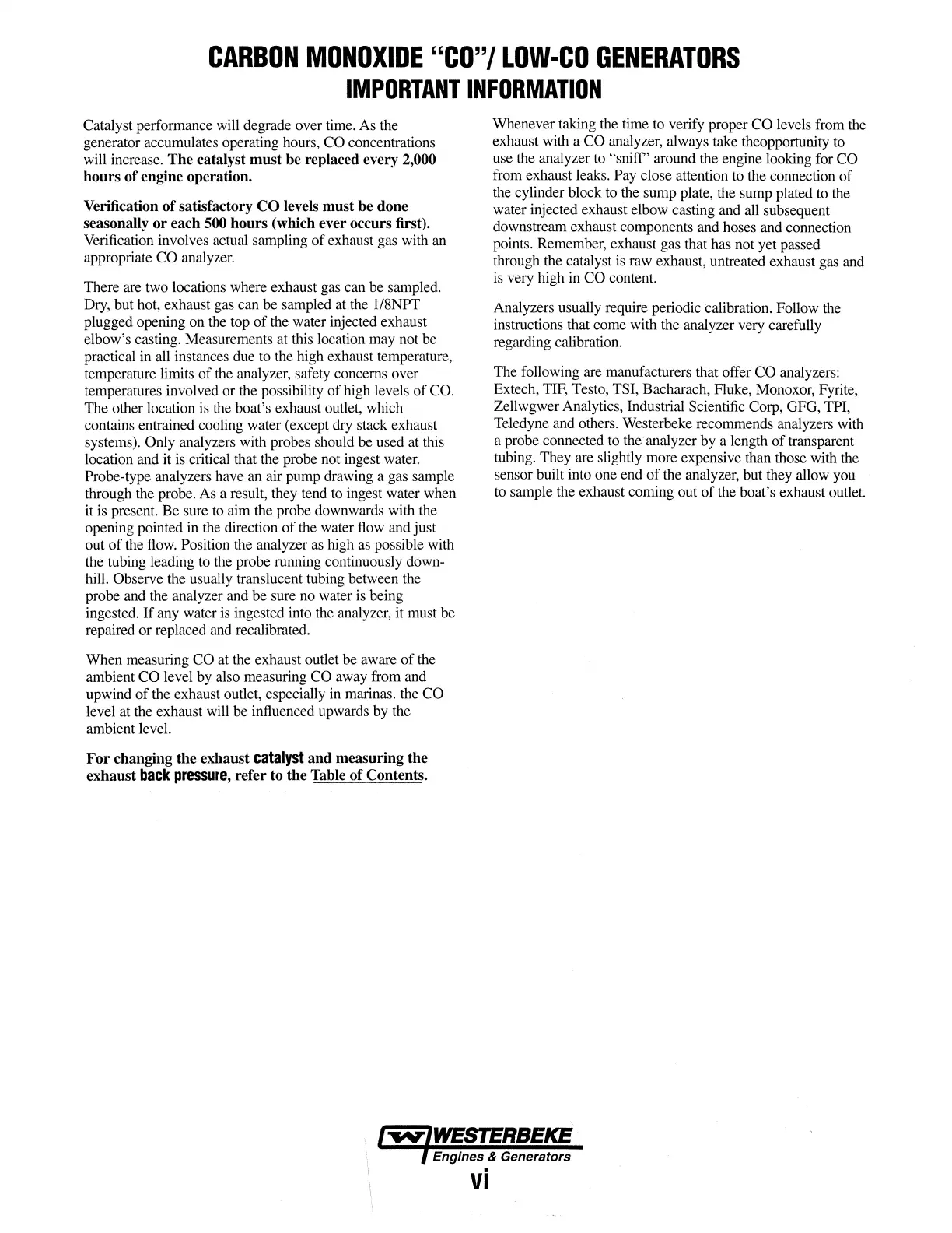 Teledyne and others. Westerbeke recommends analyzers with