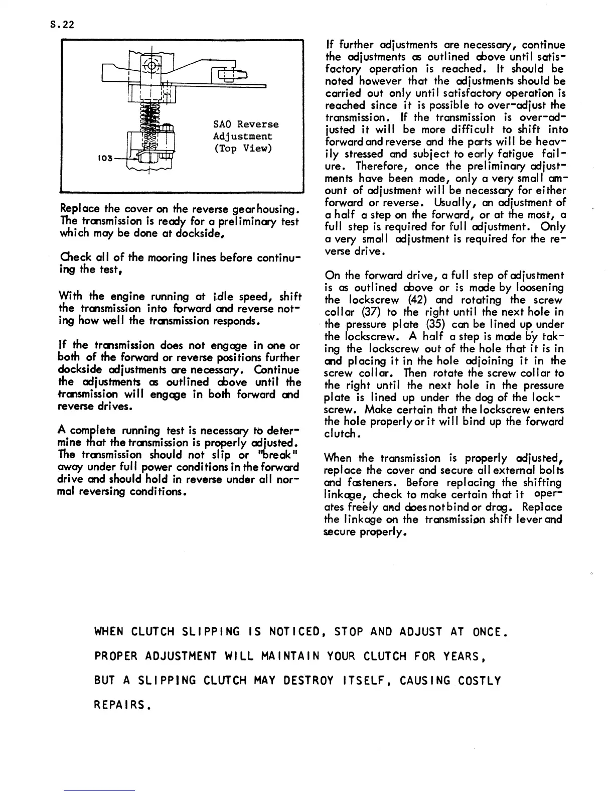 dockside ediustments are necessary. Continue