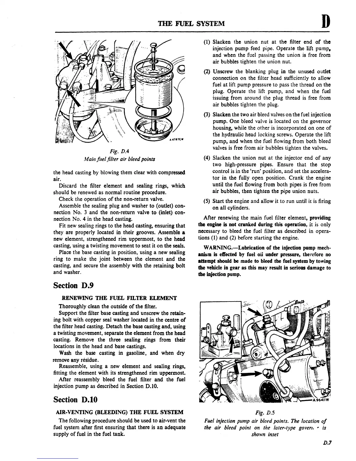 Fuel injection pump air bleed points. The location
