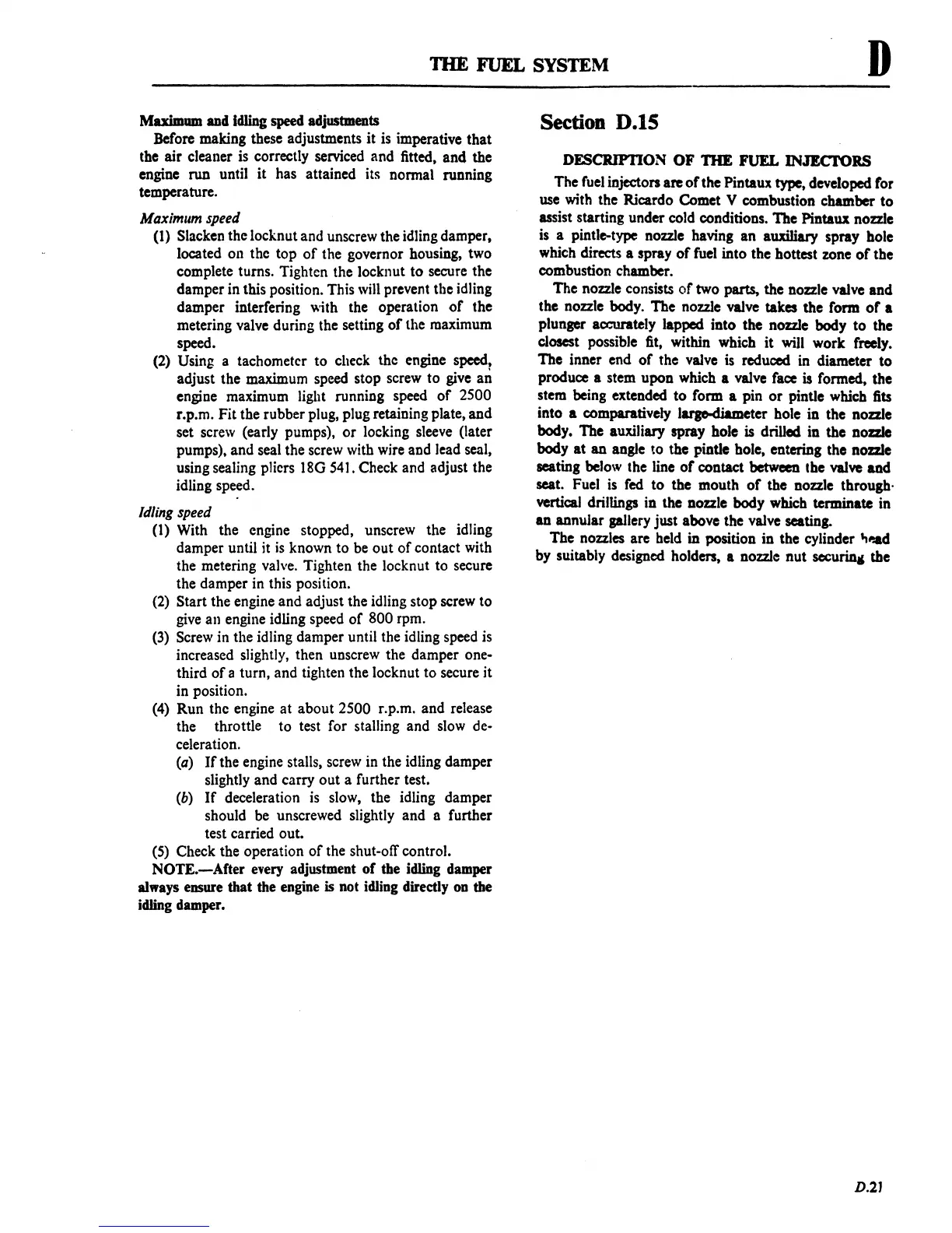 DFSCRJPTION OF THE FUEL INJECl'ORS