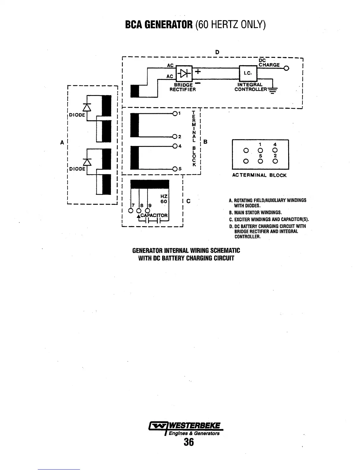 Westerbeke 4.5 BCG - BCA Generator (60 Hertz Only); BCA Generator Internal Wiring Schematic