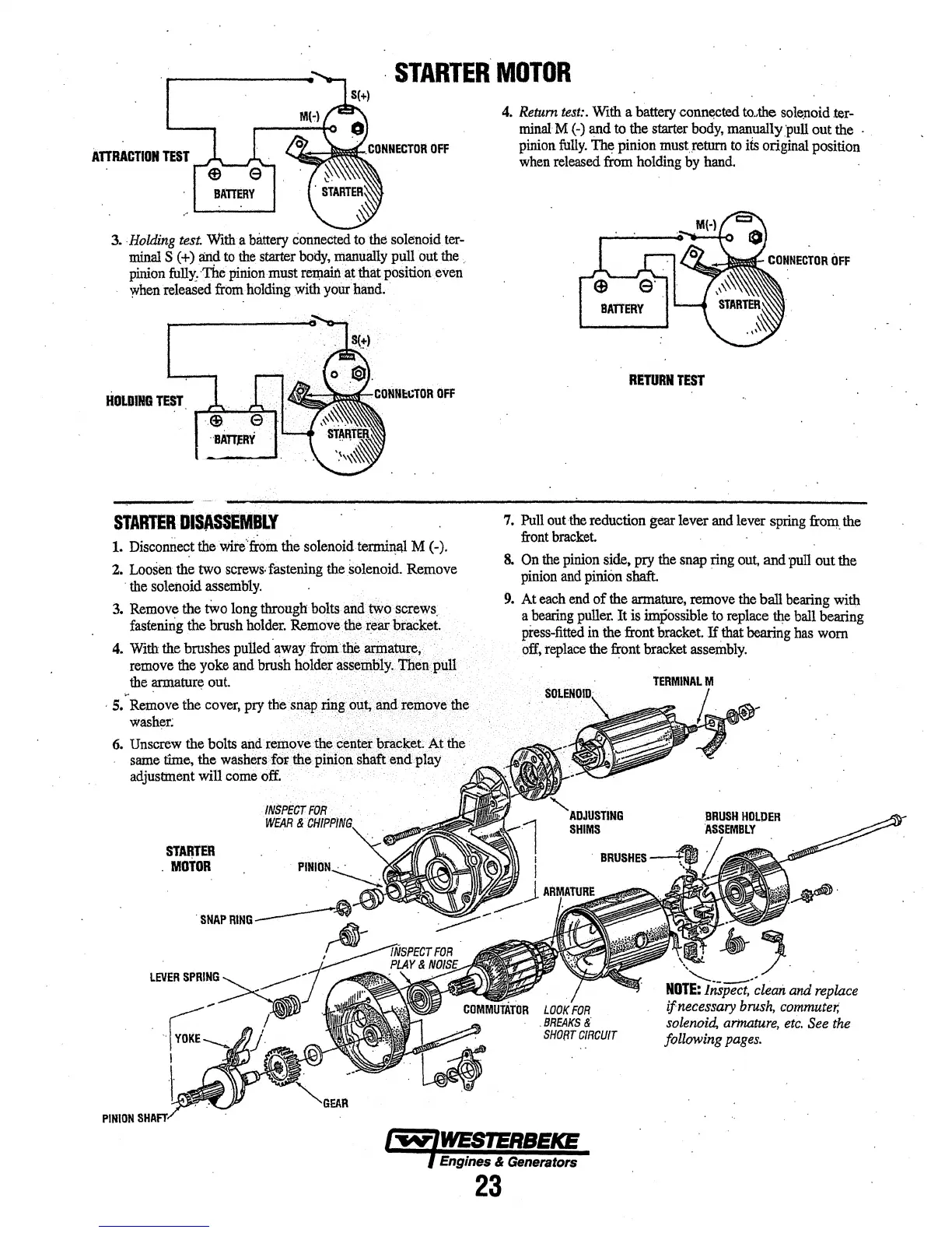 Westerbeke 4.5 BCGA - STARTER MOTOR DISASSEMBLY; STARTER MOTOR TESTS AND STEP-BY-STEP DISASSEMBLY