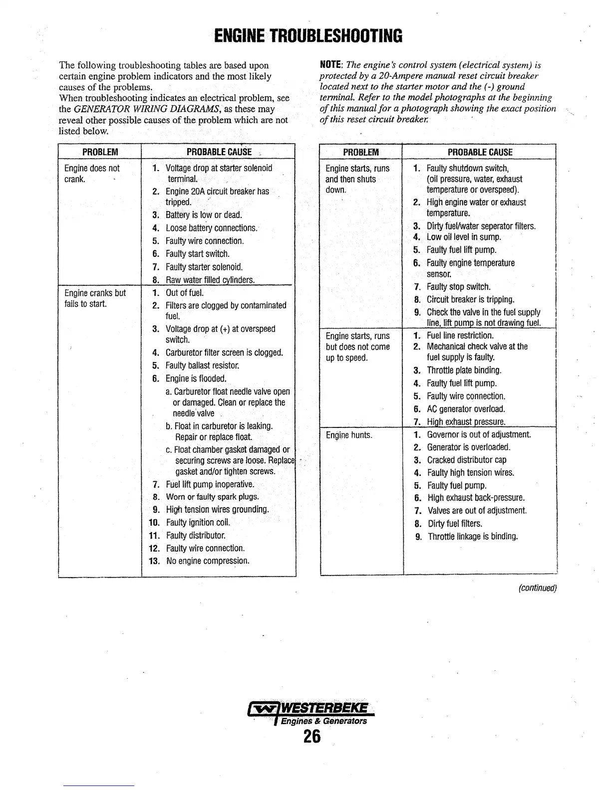 Westerbeke 4.5 BCGA - ENGINE TROUBLESHOOTING GUIDE; COMMON ENGINE STARTING AND RUNNING PROBLEMS