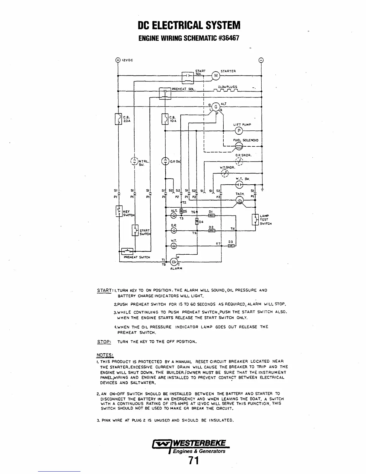 Westerbeke 42B FOUR - Engine Wiring Schematic #36467