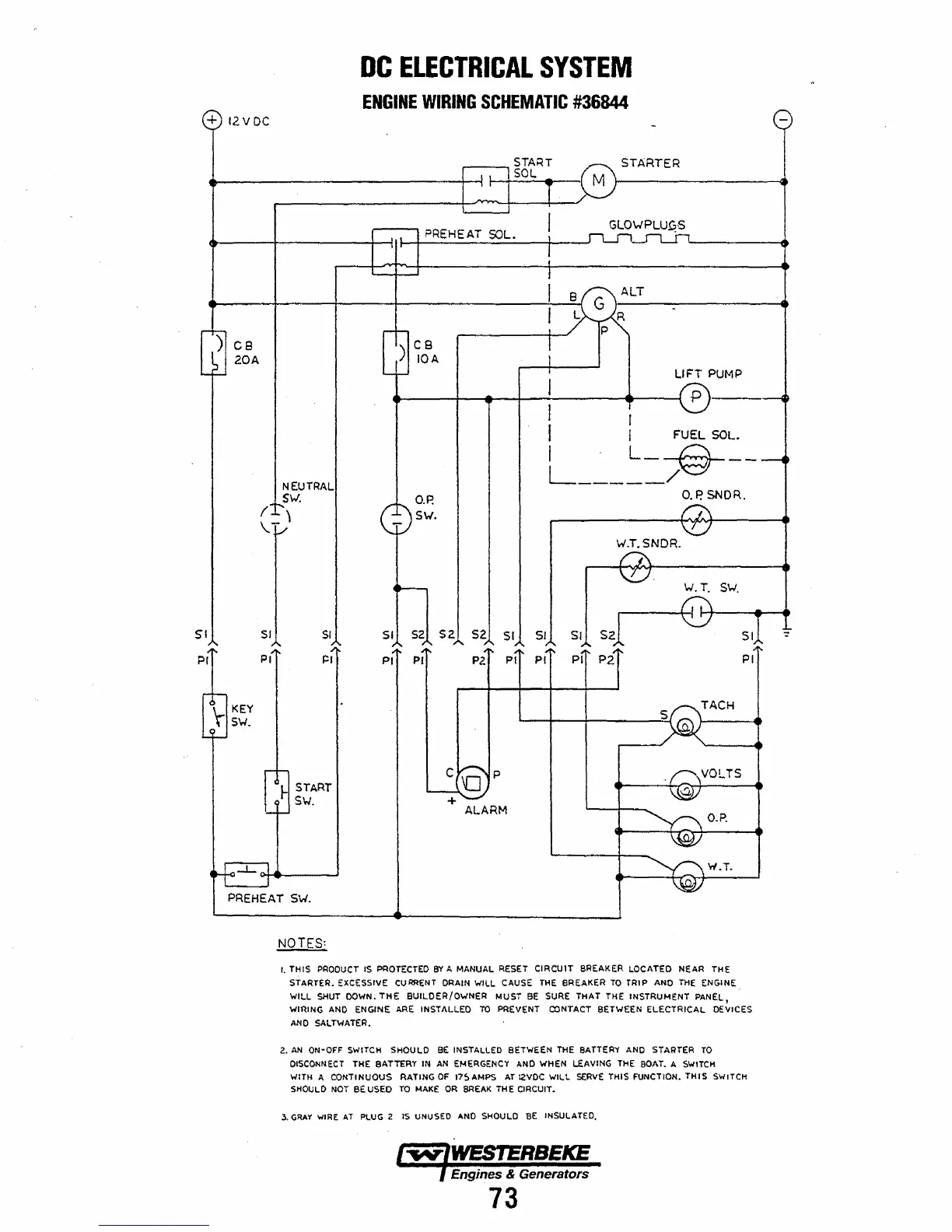 Westerbeke 42B FOUR - Engine Wiring Schematic #36844