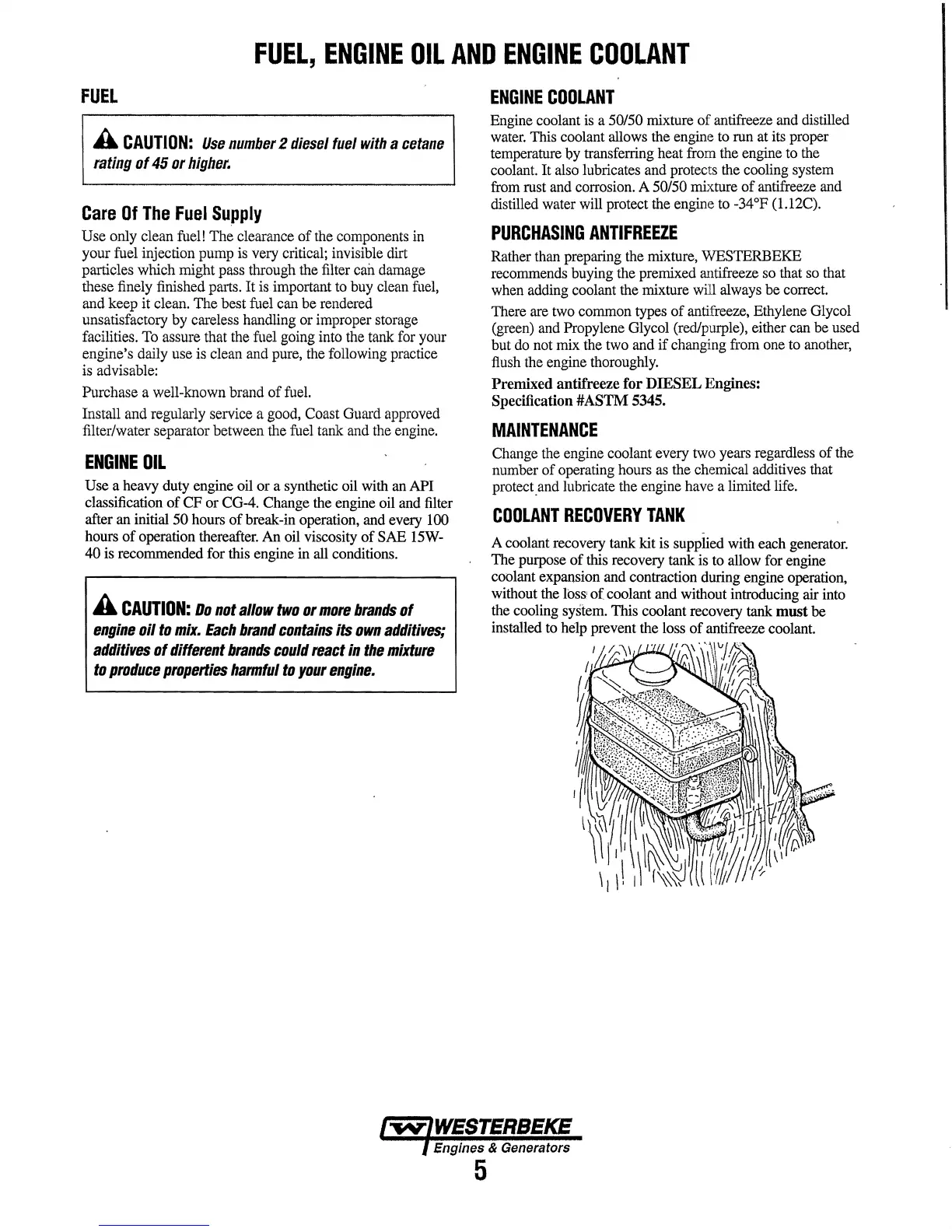 A coolant recovery tank kit is supplied with each generator.